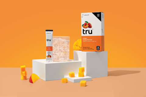 All Tru sparkling beverages, wellness shots, and drink mixes are completely vegan.