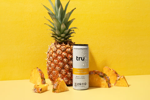 Tru Defense Seltzer is a crisp, fruit-forward sparkling water made with real pineapple juice and blended with ginger, cayenne pepper, and vitamin C. It's a refreshing, naturally flavored drink with a functional twist. - Real Fruit Juice & Natural Flavors