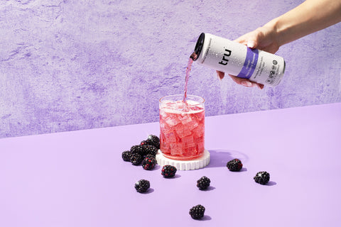 Naturally flavored with notes of blackberry, Tru Refresh Sparkling Drink is a caffeine free functional beverage made with electrolytes, lemon balm, and real fruit juice.